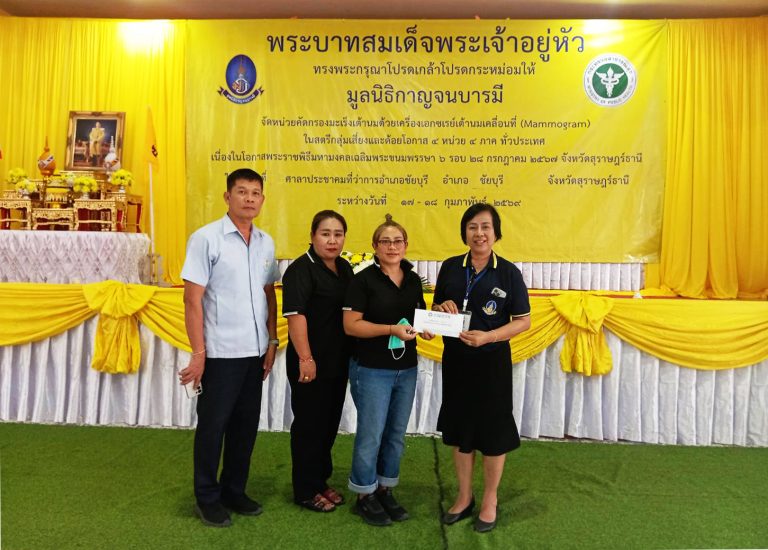 บริษัท ไทยทาโลว์ แอนด์ ออยล์ จำกัด (สำนักงานใหญ่) สนับสนุนงบประมาณให้กับมูลนิธิกาญจนบารมีร่วมกับสาธารณสุขอำเภอชัยบุรีและโรงพยาบาลชัยบุรี จัดโครงการคัดกรองมะเร็งเต้านม โดยเครื่องเอกซเรย์เต้านมเคลื่อนที่ (Mammogram) ในสตรีกลุ่มเสี่ยงและด้อยโอกาส ๔ หน่วย ๔ ภาค ทั่วประเทศ