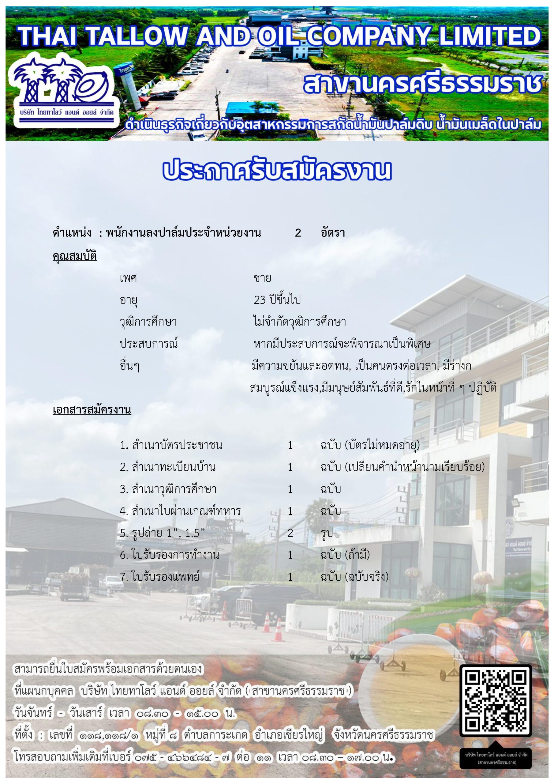 บริษัท ไทยทาโลว์ แอนด์ ออยล์ จำกัด สำนักงานใหญ่ บริษัท ไทยทาโลว์ แอนด์ ออยล์ จำกัด สาขาบางสวรรค์ บริษัท ไทยทาโลว์ แอนด์ ออยล์ จำกัด สาขานครศรีธรรมราช